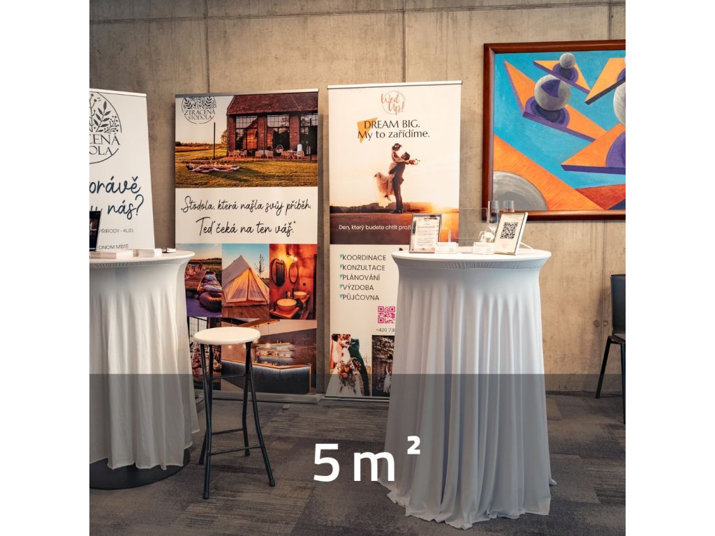 - prostor o velikosti 5 m² pro dvě osoby dle výběru (poměry stran se mohou lišit v závislosti na umístění)